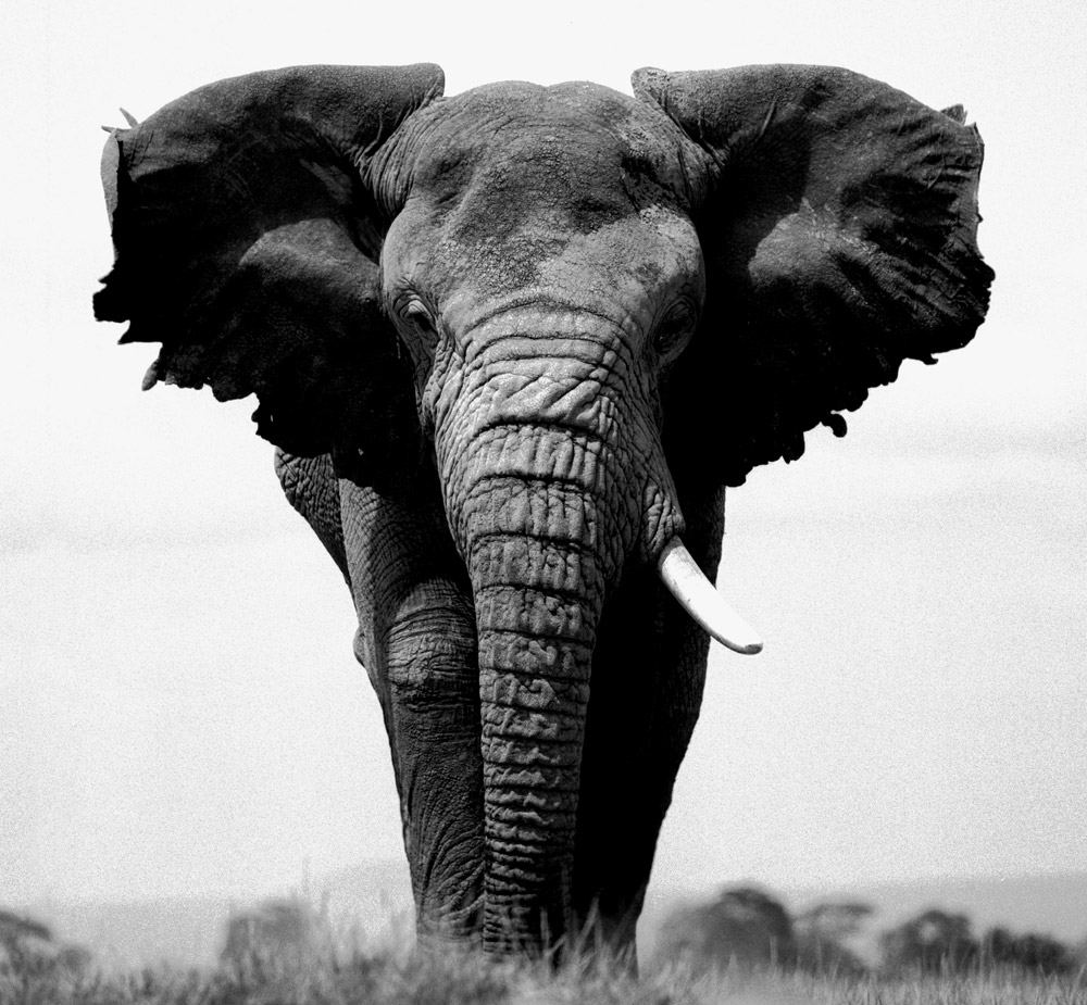 Ganesh is in full musth and striding across the plains of Amboseli National Park in Kenya searching for females. I am lying on the ground in front of him in order to get this low angle photograph. This may seem a little short-sighted but I have worked with Ganesh many times and know him well. Despite this it is clear that he is waving his huge ragged ears at me. This is a sign of aggression and is typical of male elephants in musth. They wave their ears in order to spread the scent from the temporal glands on the sides of their heads which exude a sticky substance called temporin. Before he came too close I clambered back into the Land-Rover and got out of his way. He did not skip a stride.